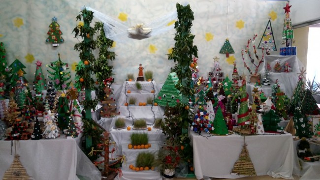 A exposição embelezou a entrada do Centro Infantil e conta com mais de 70 árvores de Natal, que estão em redor do presépio.