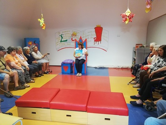 À chegada fomos recebidos por uma das colaboradoras da biblioteca que nos levou a conhecer o local, e nos encaminhou até ao espaço onde podemos ouvir o conto da “Vaca Estrelinha”.